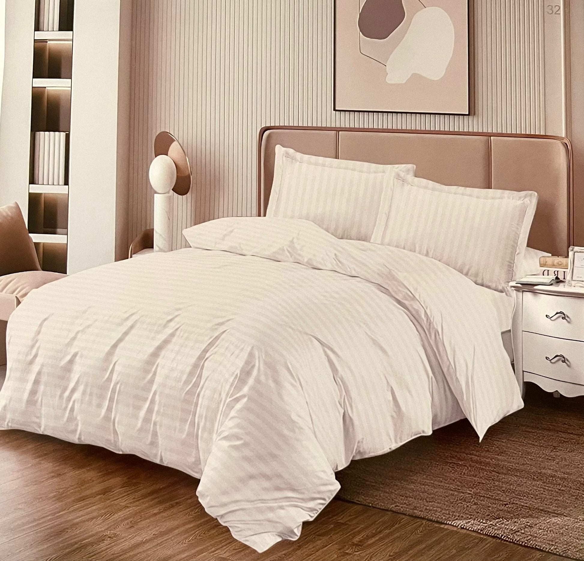 Realizată din Damasc de bumbac premium, lenjeria impresionează prin textura sa moale, fină și prin luciul subtil care reflectă lumina naturală, conferind încăperii o atmosferă luminoasă și relaxantă. Țesătura densă asigură o rezistență ridicată la uzură și spălări frecvente, menținându-și în timp aspectul elegant și prospețimea inițială. Fiind un material respirabil și plăcut la atingere, oferă un confort termic optim, indiferent de anotimp.